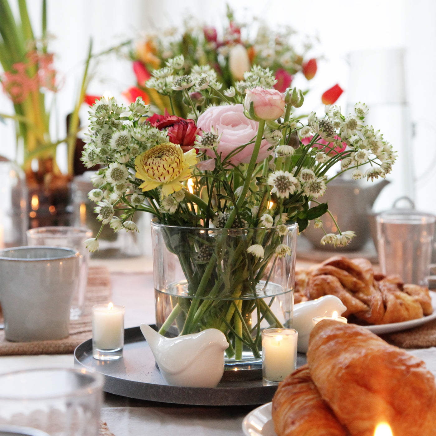 Dieses schöne MARLA, Ringtablett mit Glas lässt sich toll zu jeder Jahreszeit dekorieren, da sich das Glas befüllen lässt. (Glas wird ohne Deko verkauft)
