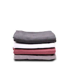 Die Geschirrhandtücher aus Baumwoll-Waffelpique sind aufgrund ihrer einzigartigen Oberfläche, die Feuchtigkeit einfängt, leichter und saugfähiger als normale Baumwollhandtücher. Durch die Waffelstruktur und ihre grobe Oberfläche kann das Handtuch schnell Feuchtigkeit aufnehmen. Eine Aufhängung befindet sich auf der Innenseite in einer der vier Ecken.