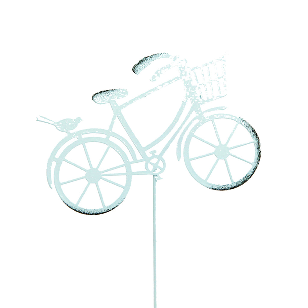 Der Dekostecker FAHRRAD, hellblau ist aus Metall und verschönert deine Pflanztöpfe, outdoor wie indoor.