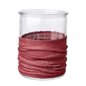 Dieser Leinenüberzug verkleidet deine Glas-Vase passend zu deiner Deko.