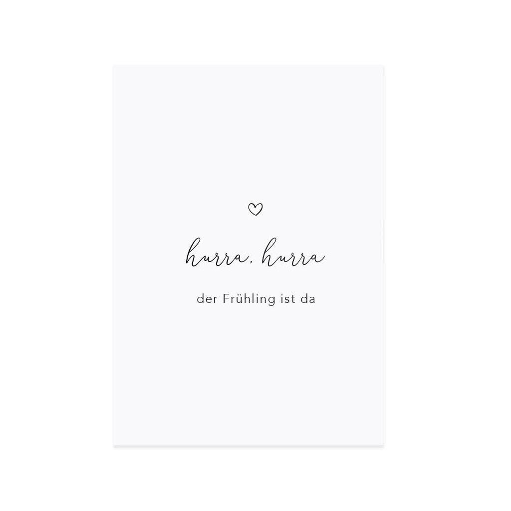 Die Postkarte FRÜHLING IST DA wurde handgeschrieben und dann digitalisiert. Alle Drucke vom Label Eulenschnitt werden auf hochwertigem, matt lackiertem 400g Premium Papier gedruckt. Die Rückseite ist blanko mit einem kleinen Eulenschnitt-Logo verziert, sodass man noch viel Platz zum Beschreiben der Karte vorfindet.