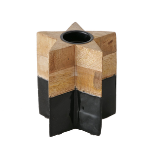 DerKerzenhalter SKANDI STJERNE, 15cm ist aus Holz und Metall. Das klare, dezente Design ist ein Must Have für alle Liebhaber des skandinavischen Einrichtungsstils. (Hinweis: Produkt wird ohne Deko verkauft).