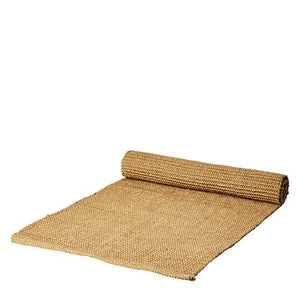 Der Tischläufer ist aus 100% Jute. Es hat ein grobe Optik. Macht sich wunderbar für den rustikalen Landhaus-Look auf deinem Tisch.