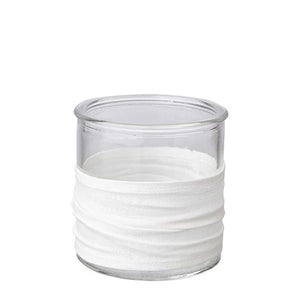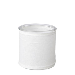 Dieser Leinenüberzug verkleidet dein Windlicht passend zu deiner Deko.
