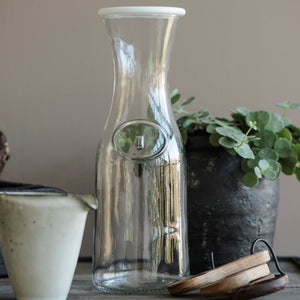 Diese schliche Glaskaraffe mit Deckel macht sich wunderbar auf deinem gedecktem Tisch. Wir lieben dieses schlichte, nordische Design mit praktischer Note.