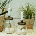 Das Dekoglas PIPPA mit Kerzenhalter, groß/messingfarben lässt sich perfekt zu jeder Jahreszeit dekorieren, da sich der Deckel öffnen lässt und das Glas befüllen. Ein Klassiker dem amerikanischen Einmachglas nachempfunden, macht es sich toll in deiner Gemütlichkeit. Es wird nie langweilig Dekoglas PIPPA mit Kerzenhalter, groß/messingfarben neu zu dekorieren. Im Sommer haben wir sie mit Muscheln, Sand & Gräsern gefüllt, im Herbst mit Nüssen, Kastanien, kleinen Kürbissen & im Winter mit Tannenzapfen oder Kerzen. Unsere kurzen Stabkerze, kurz, 6Stück