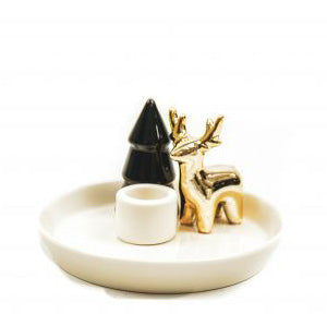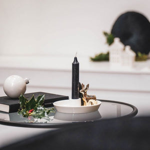Dieser zauberhafte Kerzenteller mit Tanne & Rentier ist der Mittelpunkt auf eurem Tisch. Mit einer Kerze in der Farbe eurer Wahl wird es ganz sicher zum Hingucker. Auf den Teller lassen sich noch kleine tannenzweige, Eukalyptusstiele oder Beerenzweige sowie kleien zapfen wunderbar dekorieren. Oder man genießt den Anblick vom Kerzenteller mit Tanne & Rentier ganz pur. Hier findet ihr das Weihnachtsgefühl eingefangen in einem schönen Kerzenhalter.