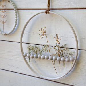 Dieser Holzkranz mit Perlen ist das perfekte DIY Dekorationsstück für jede Jahreszeit! Seine schlichte weiße Farbe und die Perlen verleihen ihm eine elegante Note. Ganz einfach selbst zu dekorieren und immer wieder an die jeweilige Jahreszeit anzupassen. Ein vielseitiges und modernes Accessoire für Zuhause.
