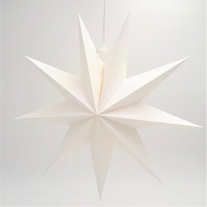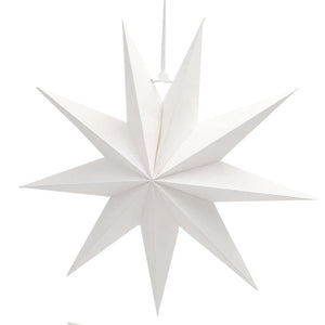 Eine schöne weihnachtliche & stimmungsvolle Deko-Idee für dein Zuhause: dieser weiße Papierstern mit neun Spitzen zum Aufhängen, skandinavisch cleanes Design. Mit Bindeband und Aufhängung. Ihr findet ihn bei uns im Shop in weiteren, schönen Farben.