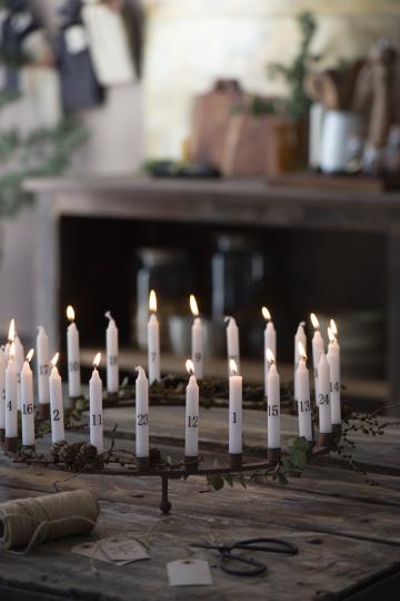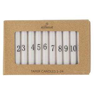 Adventskalender-Kerzen, weiß/grau/kurz/ø 1,3cm, 24 Stück