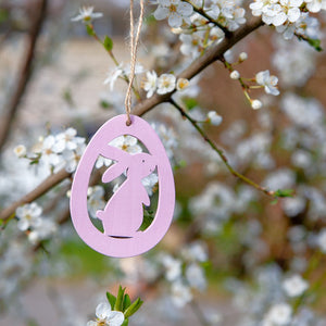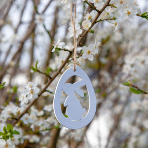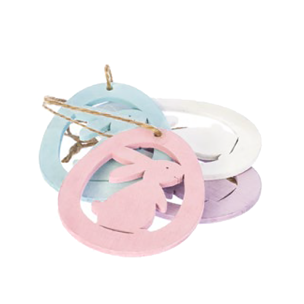 Anhänger HASE IM EI, 4er Set im schlichten, natürlichen Design hängen sie an ein paar Zweigen wunderbar und lassen sich mit weiteren Anhängern kombinieren.