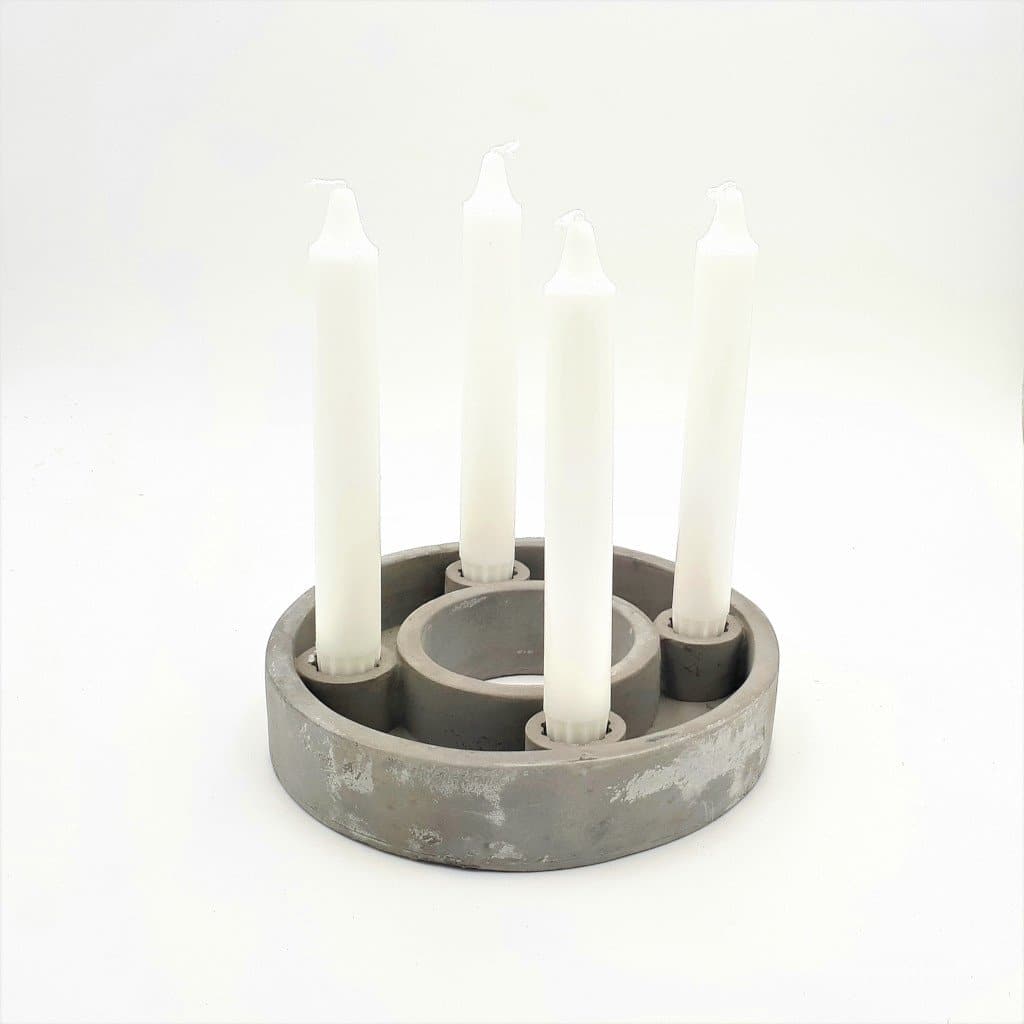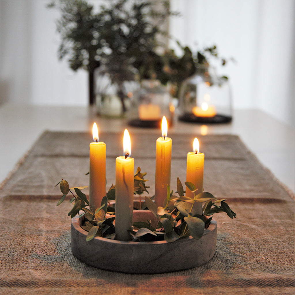Der Beton-Kerzenring Ella überzeugt in seiner Einfachheit und sieht auch dekoriert einfach großartig aus! Wir lieben diesen besonderen Look, schlicht und trotzdem besonders schön. Dazu passen unsere Stabkerzen kurz im 6er Pack. (Hinweis: Produkt wird ohne Deko verkauft)