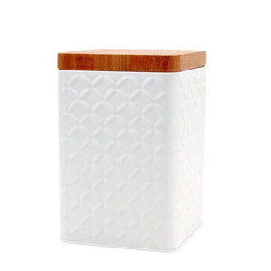 Die Blechdose BASS, weiß/holzfarben ist eine Aufbewahrungsdose, welche sich mit Leckereien, Kerzen oder anderes befüllen lässt. Ein schlichtes, besonderes Design für dein Zuhause.