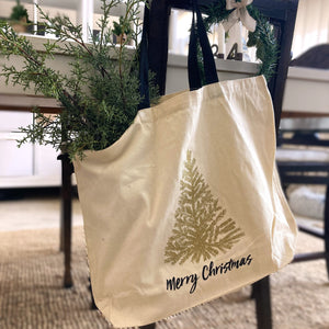 Der Canvas-Shopper MERRY CHRISTMAS mit zwei längeren Tragegriffen ist aus festem Segeltuch und innen beschichtet. Die Nähte sind verstärkt, sodass sie einen Einkauf sicher nach Hause bringen sollten.