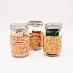 Gläser mit Schraubverschluß sind nicht nur in der Küche zum einmachen oder gefüllt mit Leckereien als Gastgeschenke anzutreffen. Wir sind sehr begeistert von diesen sehr praktischen Gläser zur Aufbewahrung von kleinen Gegenständen oder für Gartenzubehör. Dank des besonderen Designs ist das Gartenhelferlein MATCHES nicht nur eine Freude fürs Auge und man kann so auf einen Blick erkennen, was sich in dem Glas befindet. Auch als kleines Geschenk für einen Outdoorliebhaber ist es eine wunderbare Idee.