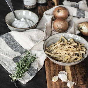 Das Geschirrtuch im Vintagelook ist aus Baumwolle und hat die Maße: B: 50cm L: 70cm.
