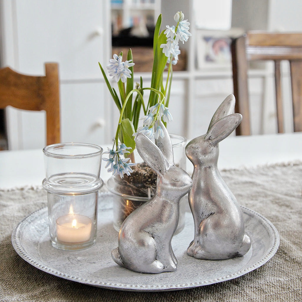 Hase SILBER, klein ist ein herziger Dekohase, egal ob auf dem Tisch, im Regal oder im Gesteck.