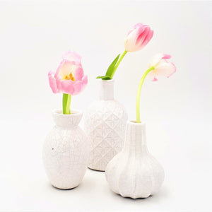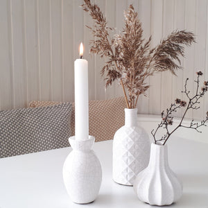 Die hübsche Keramikvase LIV in weiß glasiert sieht einfach schön aus. Die Vintage-Oberfläche macht die Keramikvase LIV zu einem einzigartigen Designstück, einzeln oder in der Gruppe