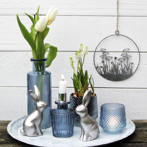Dieser wunderschöne Kerzenhalter SISKA, blau in Glas sieht einfach edel aus. Nordisch gradlinig macht sie sich toll auf dem Tisch.