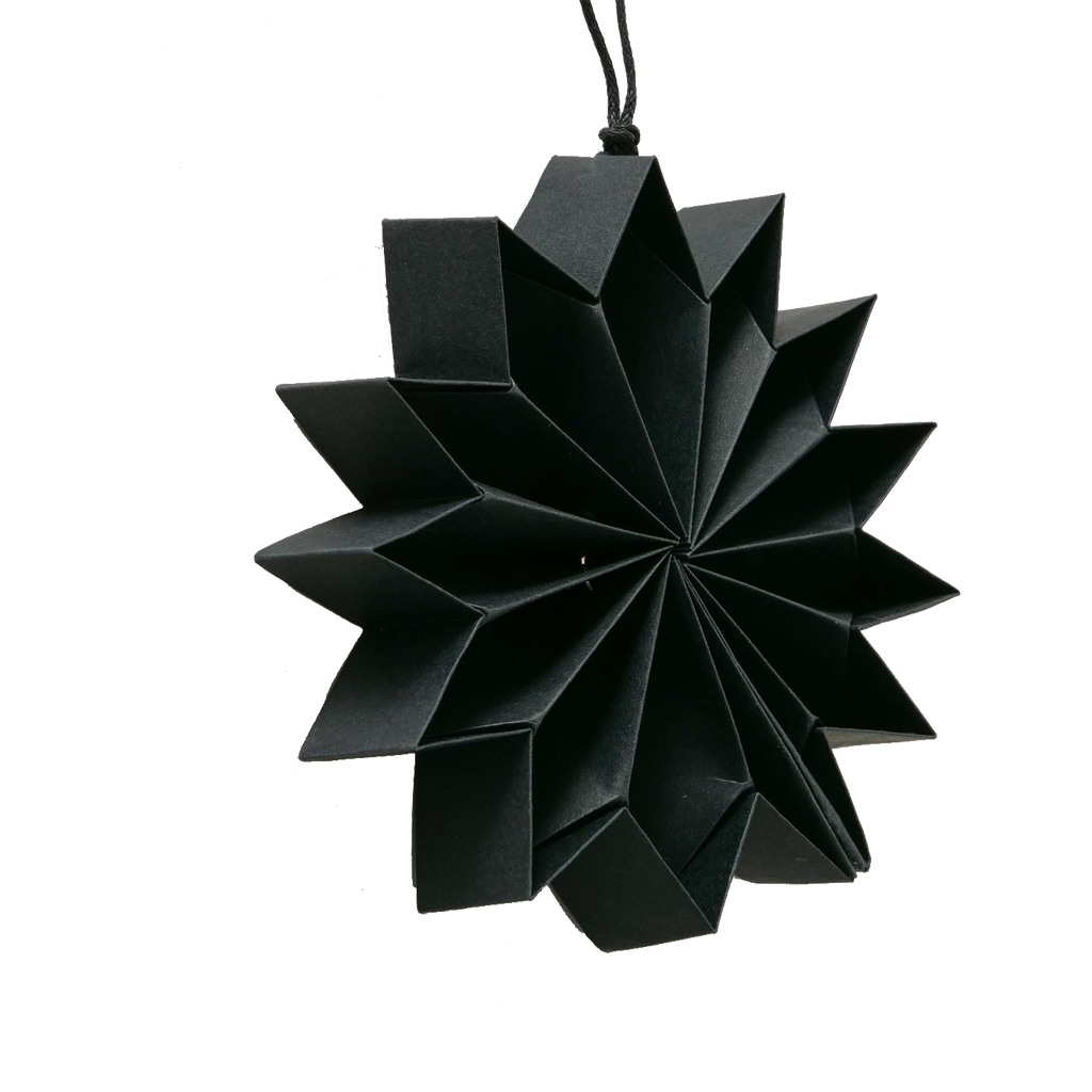 Eine schöne weihnachtliche & stimmungsvolle Deko-Idee für dein Zuhause: dieser Papierstern FINJA, 20cm/schwarz zum Aufhängen, skandinavisch cleanes Design. Mit Bindeband und Aufhängung. Ihr findet ihn bei uns im Shop weitere Sterne  in unterschiedlichen Modellen & schönen Farben.