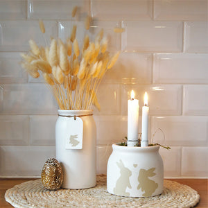 Unser Stickerset HASEN lässt sich wunderbar auf Vasen, Laternen, Windlichter, Fenster, Türen, Glasrahmen und vieles mehr anbringen. Die Oberfläche des Stickerset HASEN ist matt und wurde speziell für Dekorationen im Innen- und Außenbereich entwickelt. Das Stickerset HASEN ist für die Anbringung auf ebenen Untergründen geeignet und lässt sich wieder rückstandsfrei entfernen. Auch auf leicht abgerundeten Untergründen kann der Sticker verklebt werden. Vor der Verklebung muss der Untergrund frei von Staub und Schmutz sein und sollte mittels Spiritus gereinigt und trocken sein. Die Haltbarkeit der Aufkleber im Außenbereich beträgt bis zu 3 Jahren, im Innenbereich ist sie nahezu unbegrenzt haltbar. Es ist nicht Spülmaschinen geeignet.