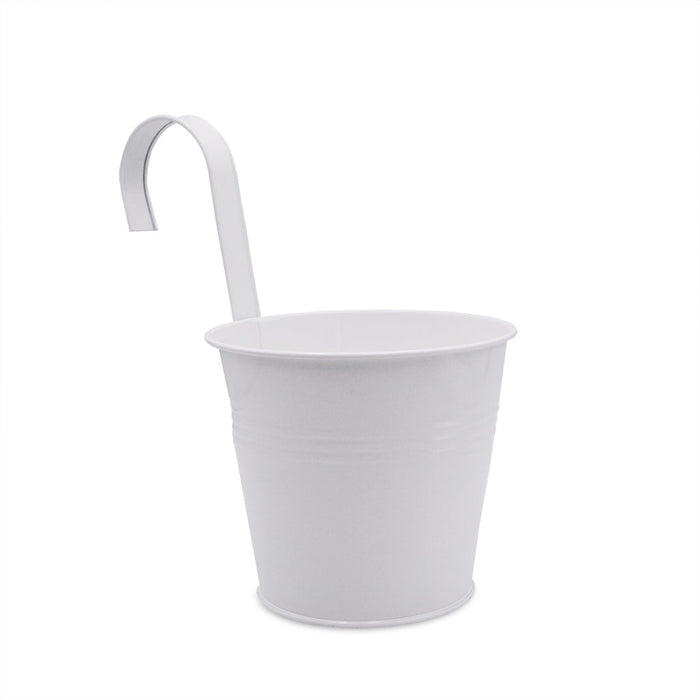 Übertopf mit Haken/ Metall, verzinkt, cremeweiss